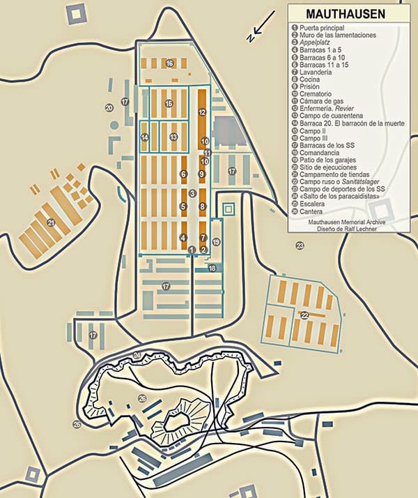 Els presoners havien de carregar sobre les espatlles enormes pedres de fins a 50 quilos de pes i pujar-les per la temible escala. Al principi, era una relliscosa rampa amb uns 140 esglaons molt irregulars. No va ser fins al 1943 que es va remodelar amb els 186 esglaons més rectilinis que s’han conservat fins a l’actualitat. Per tant, la majoria dels 7.000 presoners espanyols que van passar pel penal només van experimentar la inestable i encara més perillosa etapa inicial. Durant els mesos d’agost a desembre de 1940, tots els presoners havien de fer aquest terrible recorregut diverses vegades al dia. A partir d’aquell moment, van decidir fer-ho només una vegada en acabar la jornada. Durant aquest tortuós trajecte, centenars d’homes van perdre la vida sota els crits i els cops propinats pels SS i els kapos. Tropessons, defalliments i relliscades causades pel gel feien que els deportats caiguessin unes pedres sobre els altres.